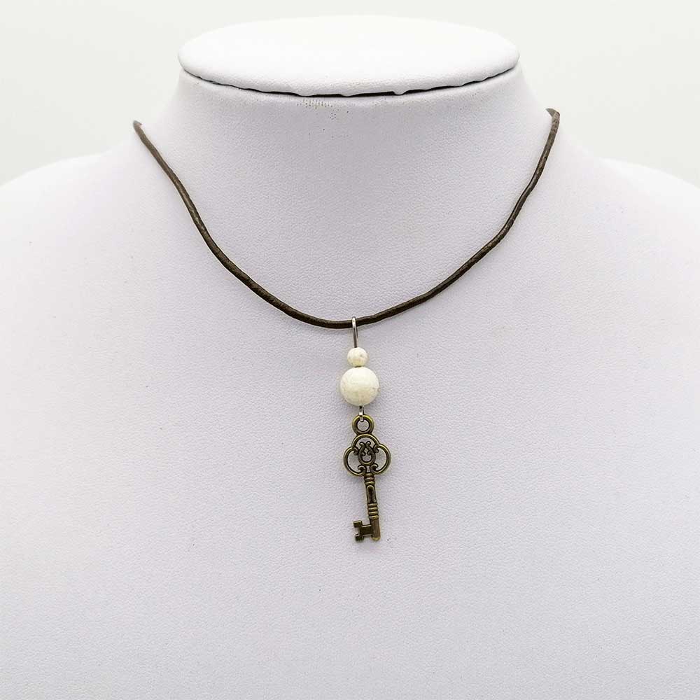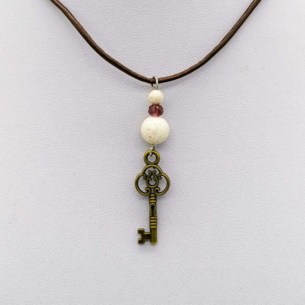 Kožna ogrlica s privjeskom od kamena s otoka Brača.
