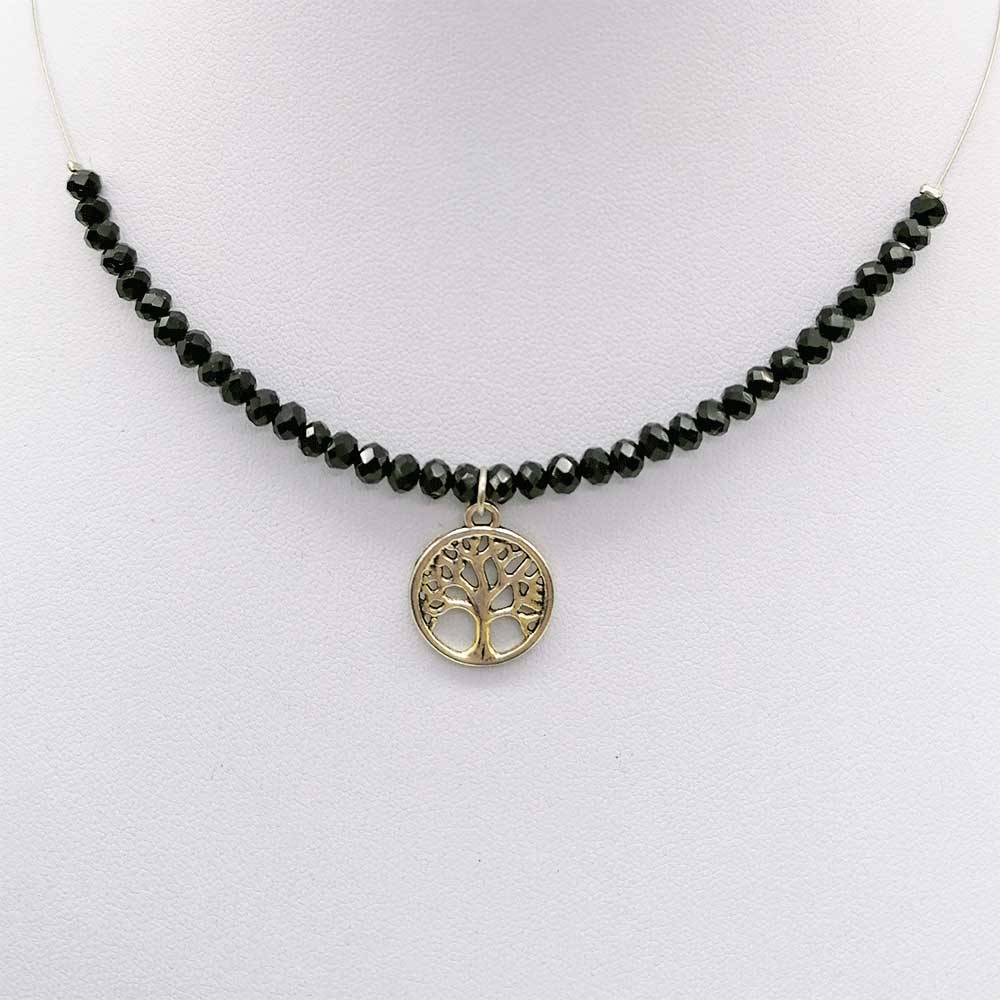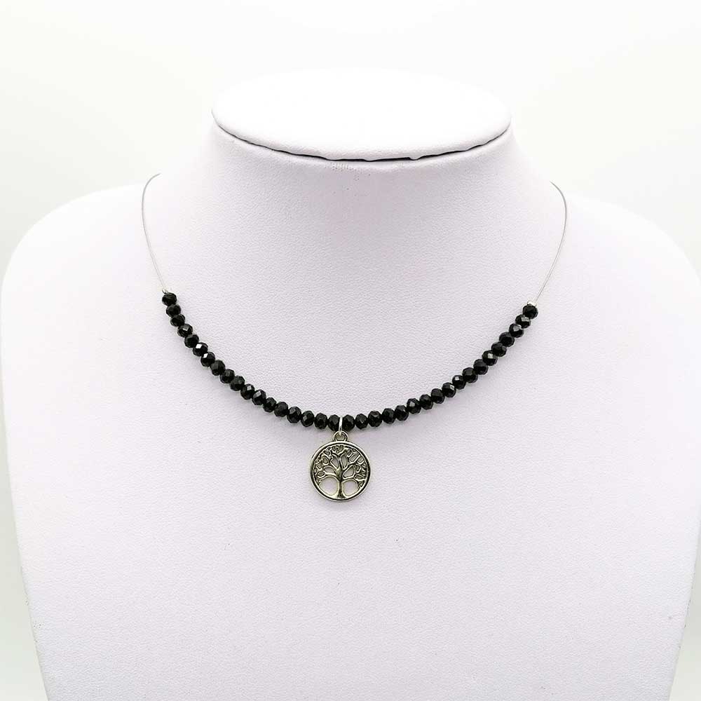 Decentna ogrlica od staklenih perlica na sajli, s privjeskom.